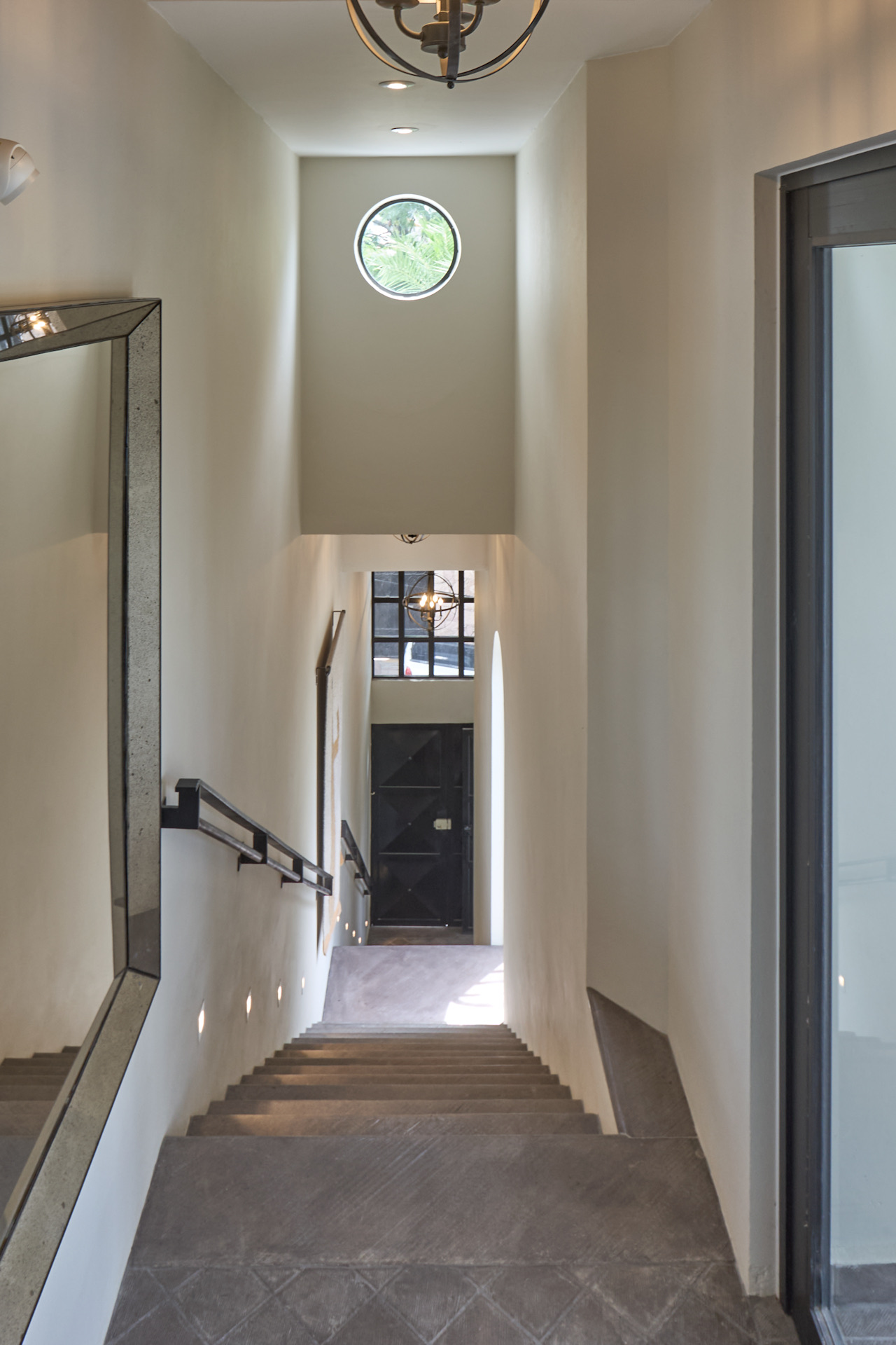 There is a guest half-bath off the large entry and an outdoor living room off the first entrance to the flat. Most walls are glass for expansive views, but shades can be drawn with the push of a button. These shades are for sun protection and privacy, but only screen, but not obscure the views.