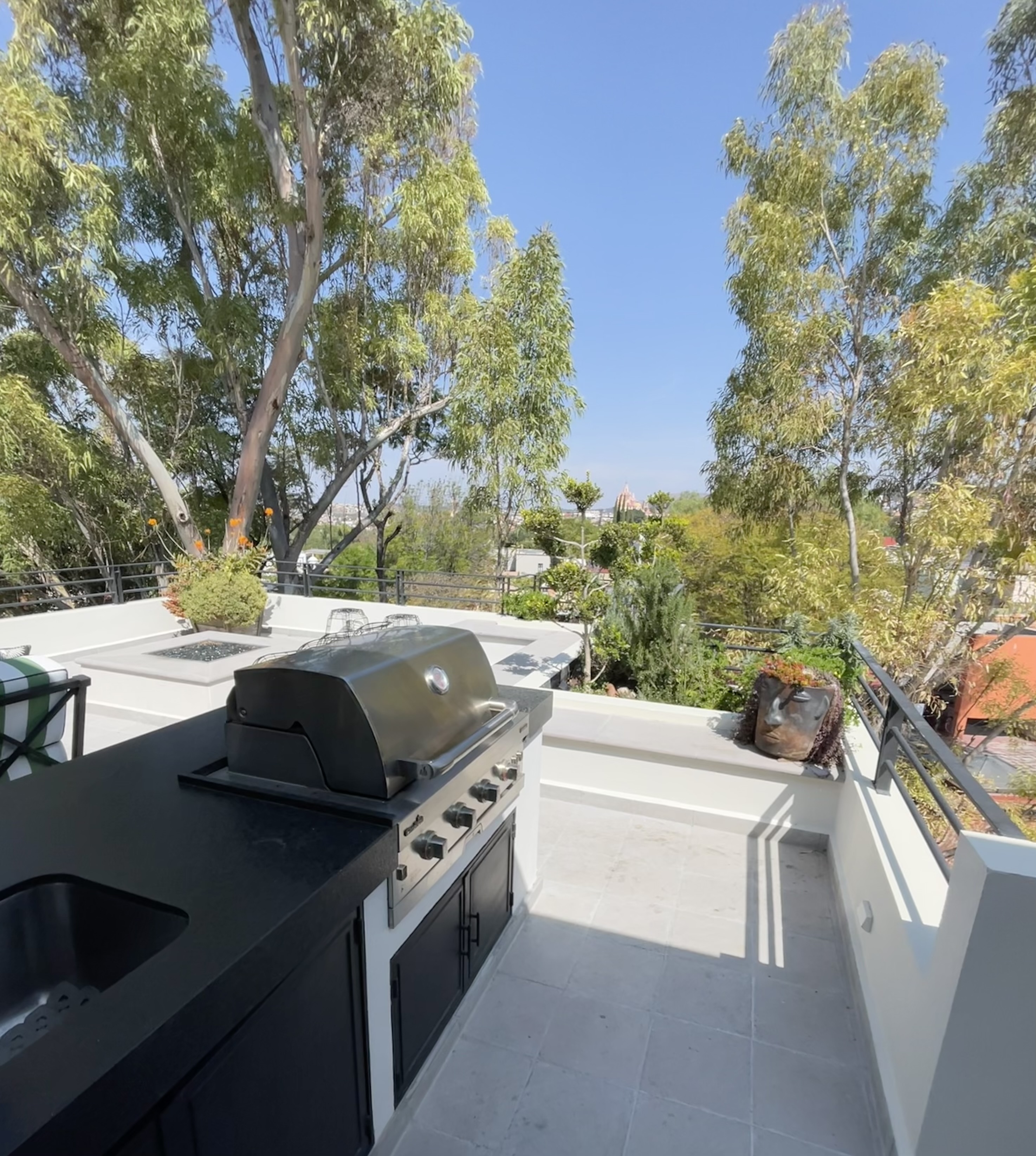 The exceptional views from this extra-large terrace are in all directions. Surrounding mature trees and greenery serve to frame these views and embrace the terrace.