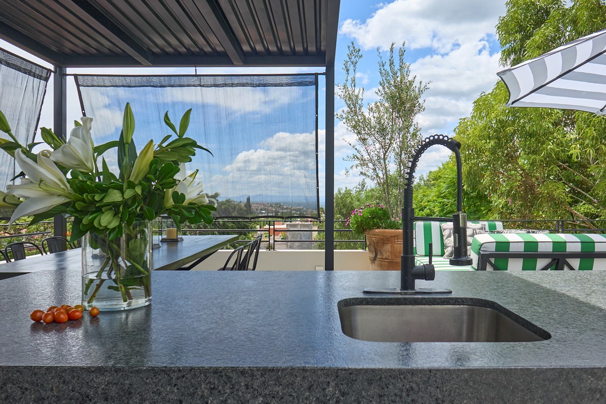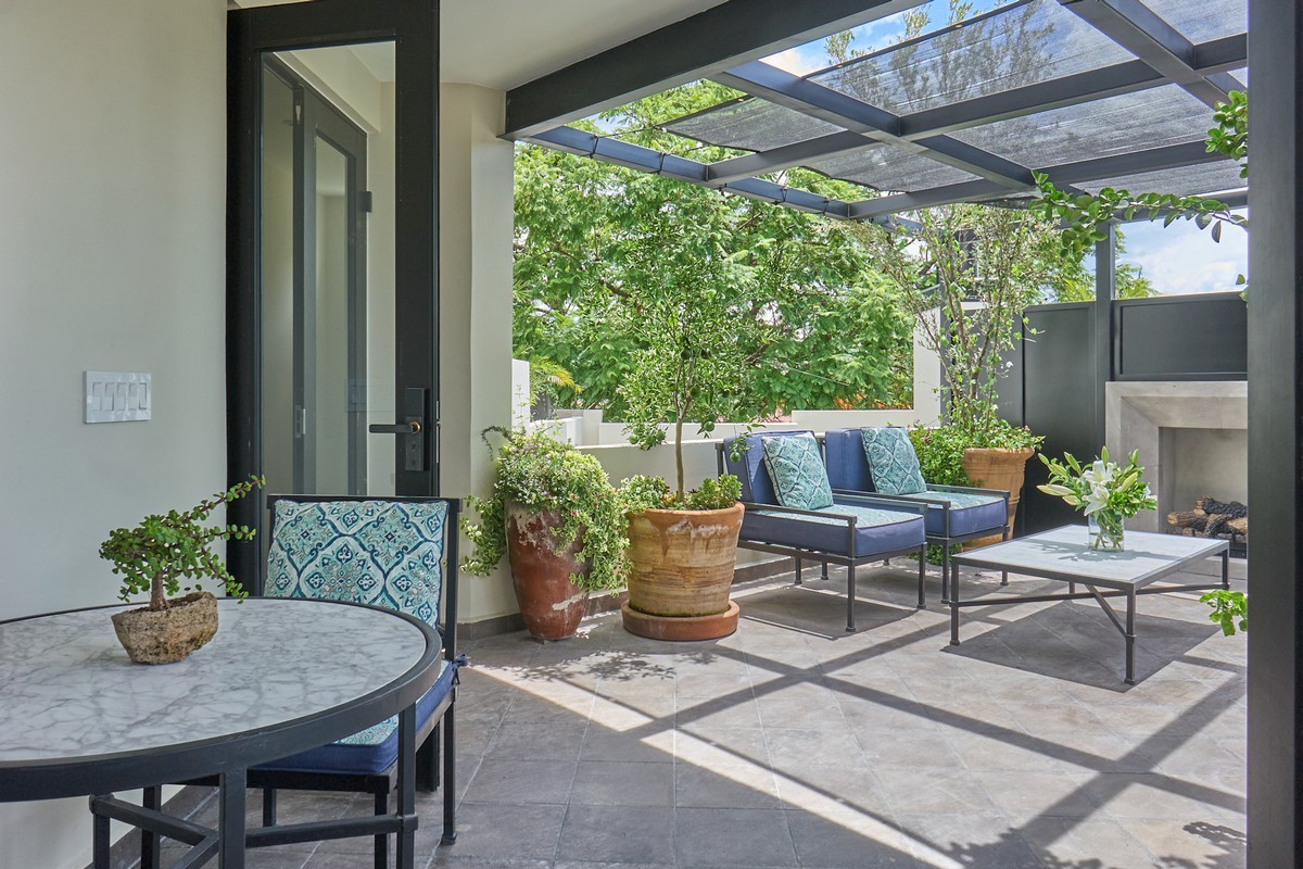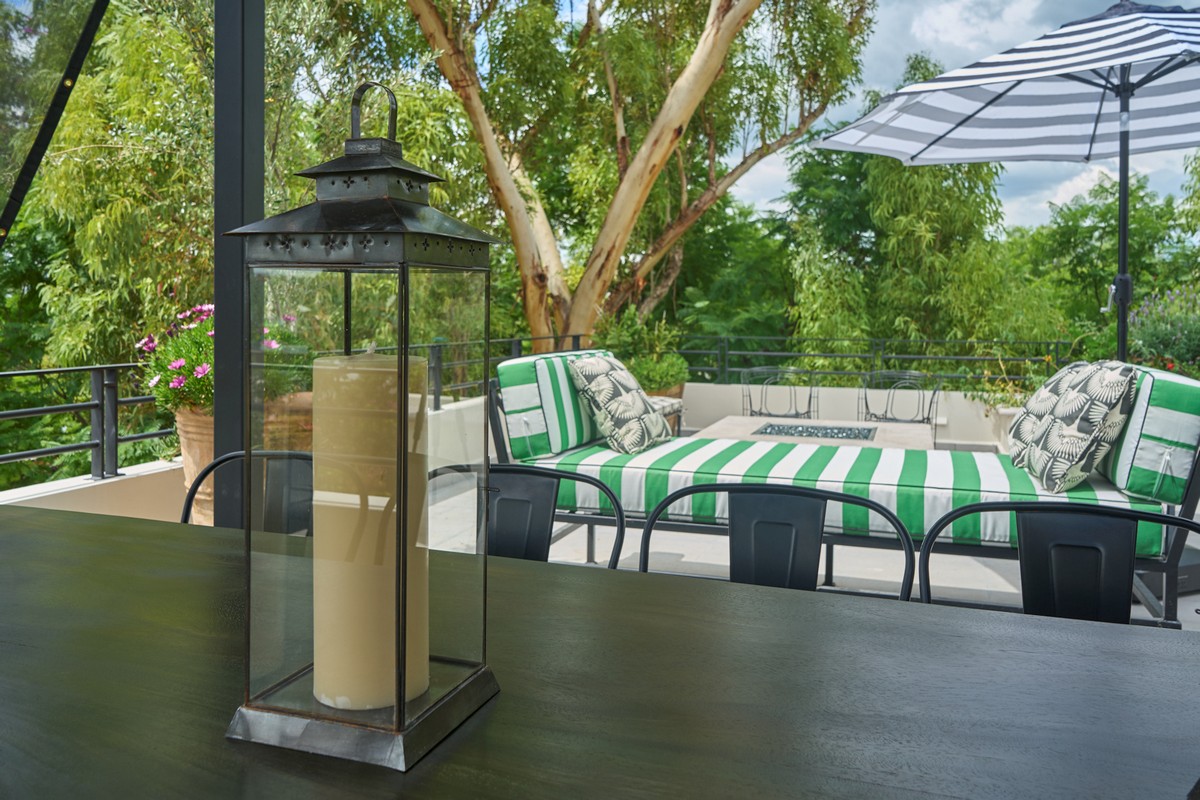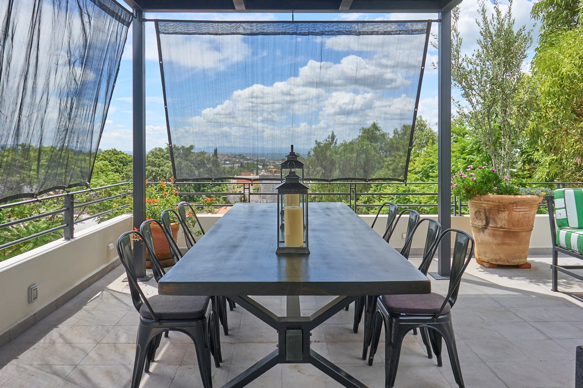 The views from this extra-large terrace are in all directions and exceptional. Surrounding mature trees and greenery serve to frame these views and embrace the terrace.